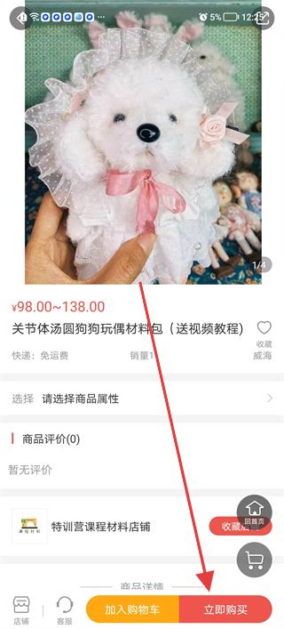 3、在商品詳情頁查看關節體湯圓狗狗玩偶材料包的價格與詳情,點擊立即購買。