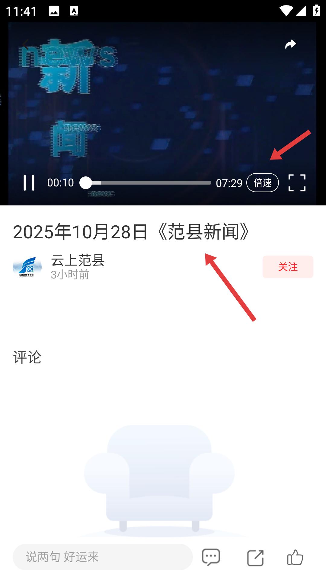 2、進入新聞播放頁面,可觀看新聞視頻,調整播放倍速,還能進行評論,分享,點贊等操作。