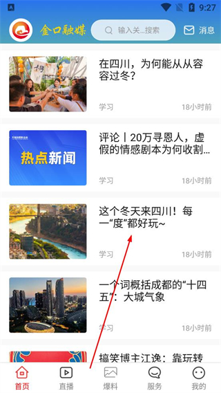 2、登錄后進入首頁瀏覽資訊列表,找到這個冬天來四川相關內容,進入對應的文章詳情頁面查看內容。