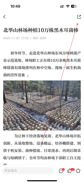 3、點擊選中的資訊進入詳情頁閱讀資訊內容了解具體信息,查瀏覽完畢后可使用評論點贊收藏功能,還可以點擊上方的分享按鈕。
