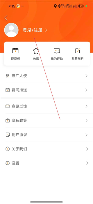 1、打開新永興進入個人中心頁面,點擊登錄注冊按鈕完成賬號登錄,登錄后可使用短視頻收藏等功能,也可查看推廣大使等其他服務入口。