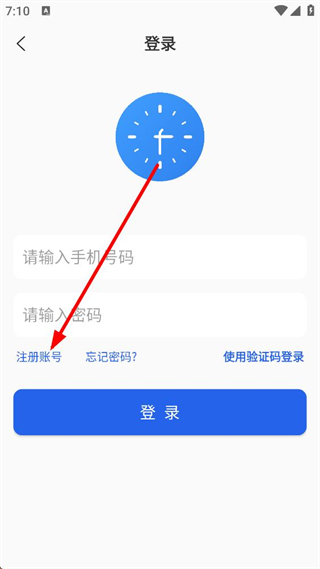 3、進入登錄頁面,可輸入手機號碼和密碼登錄,也能選擇注冊賬號、忘記密碼或使用驗證碼登錄的方式來完成登錄相關操作。