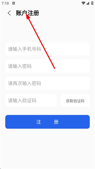 4、進入賬戶注冊頁面,需輸入手機號碼、設置并確認密碼,獲取且輸入驗證碼后,點擊注冊按鈕即可完成賬號的注冊流程。