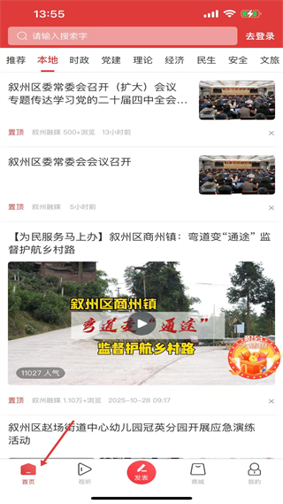 1、首頁,有本地時政等新聞分類,展示敘州區政務、民生新聞,方便用戶了解地方動態。