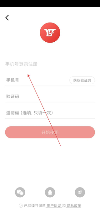 3、進入登錄注冊界面,通過輸入手機號獲取驗證碼,填寫驗證碼等信息,勾選同意協議后點擊開始使用完成登錄注冊。