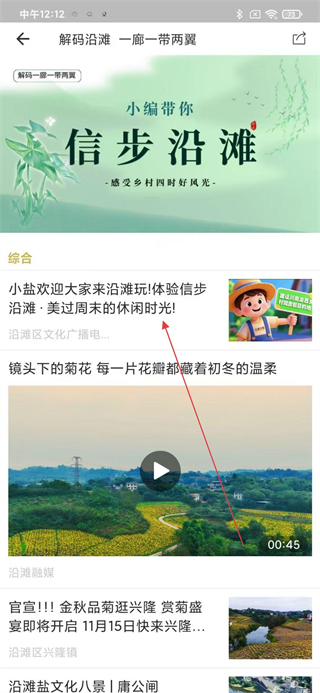 2、登錄后進入文化板塊,瀏覽各類資訊內容,找到解碼沿灘相關的資訊條目,點擊進入該資訊的列表頁面查看更多內容。