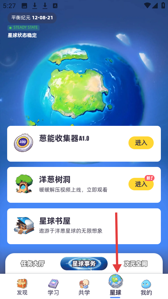 2、點星球界面呈現穩定狀態,蔥能收集器、洋蔥樹洞等功能豐富滿足探索、解壓等需求打造獨特學習體驗。