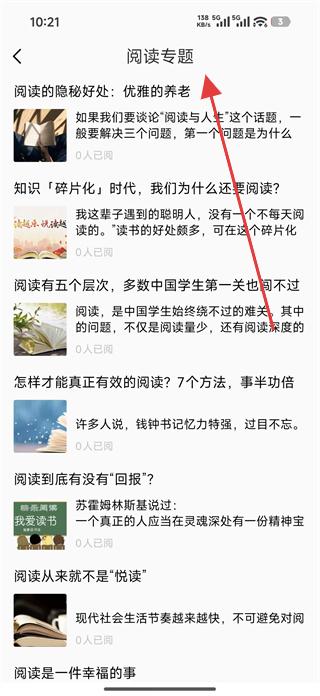 4、進入閱讀專題頁面查看閱讀的隱秘好處、知識碎片化時代等閱讀專題,了解不同的閱讀話題與觀點,拓展閱讀認知,提升閱讀素養。