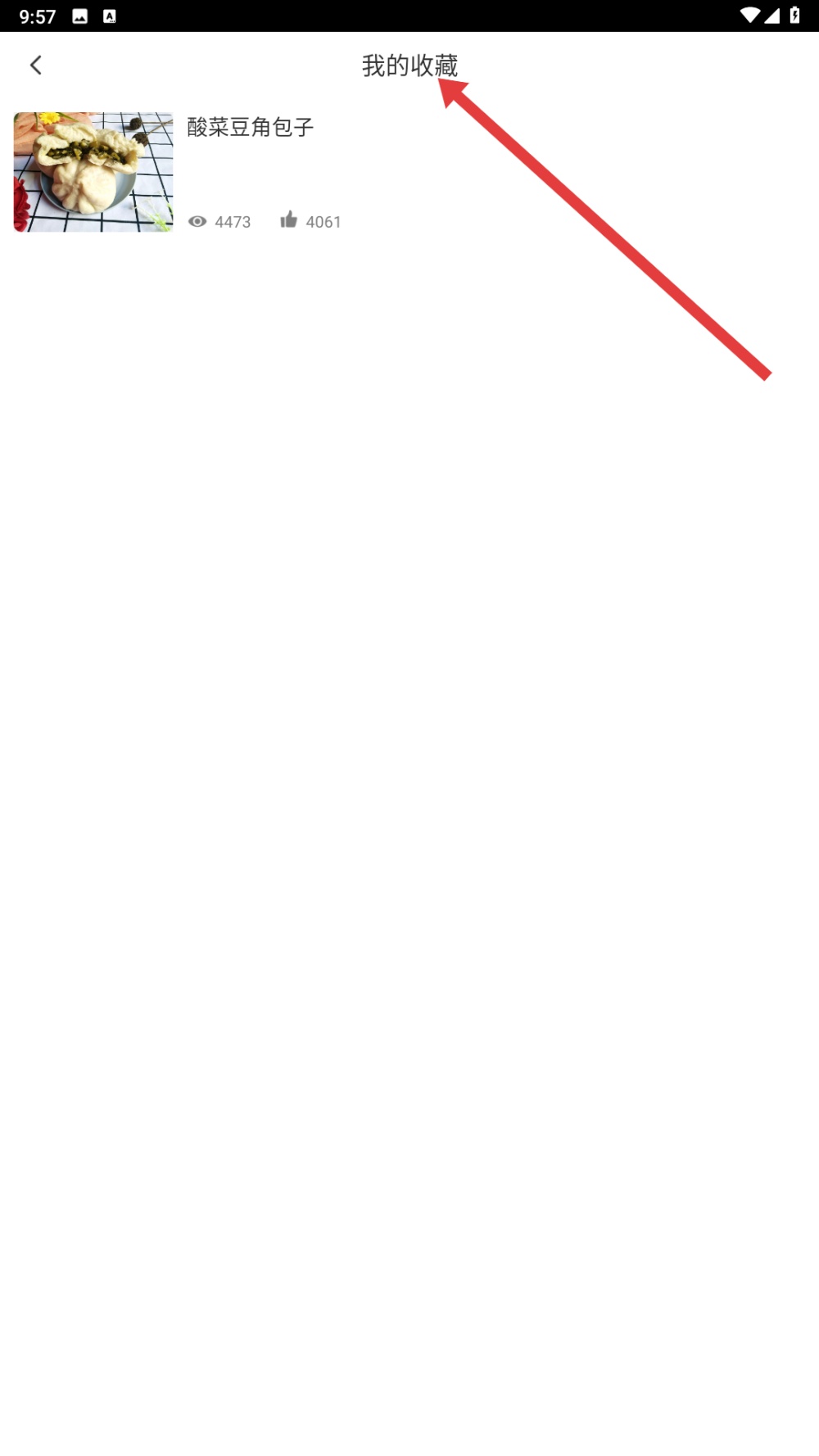 4、進入我的收藏界面,可查看已收藏的酸菜豆角包子菜譜,方便后續再次查看和制作。