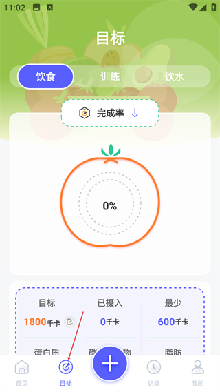2、進入目標頁面可查看飲食目標的完成率,了解目標攝入已攝入最少攝入等數據,清晰掌握飲食計劃的當前進度情況。