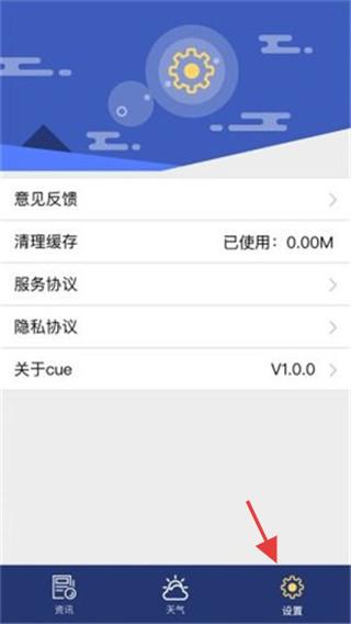 3、點擊設置界面,提供意見反饋、清理緩存功能,并有服務協議等信息,版本為v1.0.0。