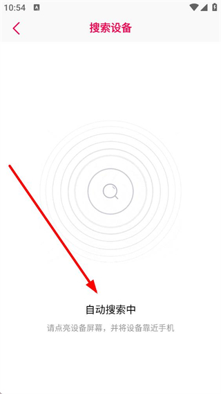 4、進入搜索設備界面,系統會自動搜索附近設備,需點亮設備屏幕并將設備靠近手機,以便成功連接運動設備。