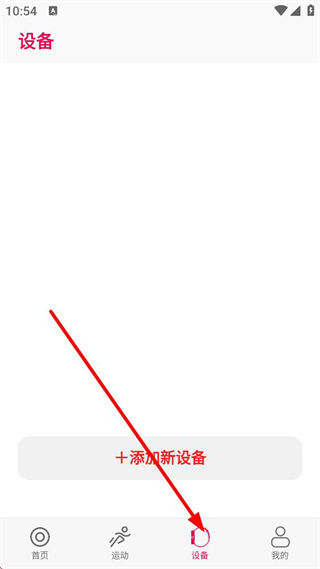 2、點擊底部設備選項,進入設備界面,可進行添加新設備操作,方便連接運動設備以同步數據。