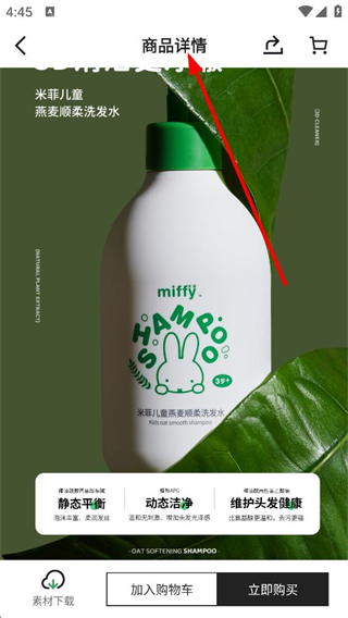 4、商品詳情頁,能查看該洗發水的產品展示圖及核心賣點,了解產品特點后可繼續推進該商品的購買流程。