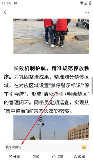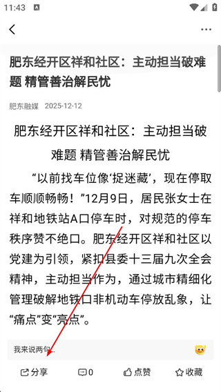 2、在資訊詳情頁面閱讀資訊的內容介紹,了解社區治理等相關信息,點擊下方的分享按鈕。