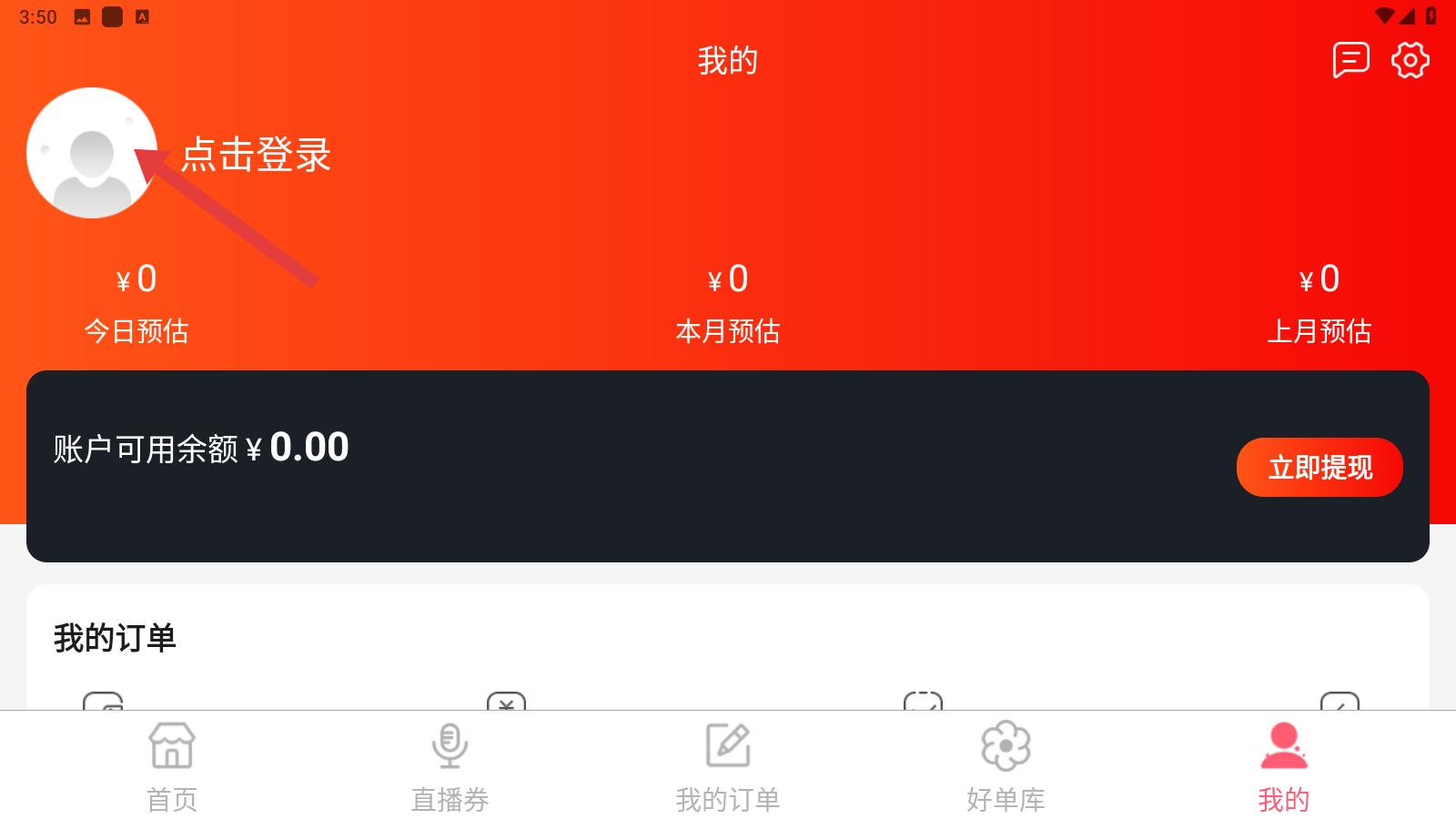 3、跳轉到我的界面之后,向上查看,發現狀態為未登錄,點擊進行登錄,跳轉到登錄界面就可以了。