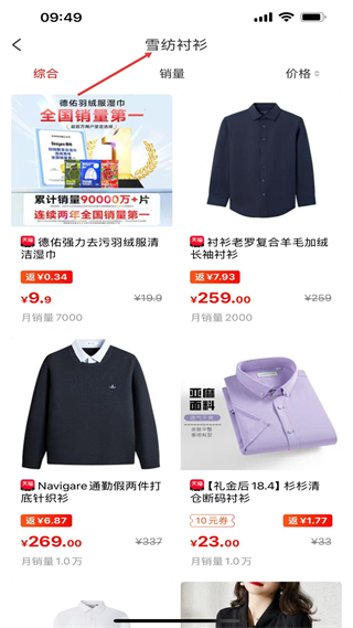 3、在雪紡襯衫的商品列表頁,能看到多款不同類型的商品,找到杉杉清倉斷碼襯衫,點擊該商品進入它的詳情頁面查看詳細信息。