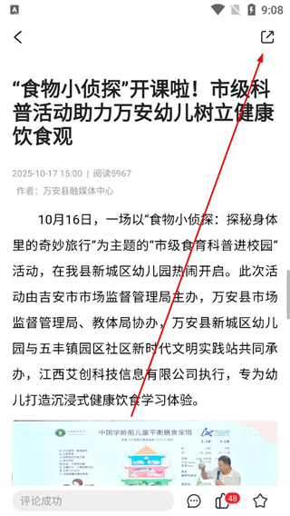 3、在資訊詳情頁閱讀活動的舉辦信息及內容介紹,找到頁面右上角的分享按鈕,點擊該按鈕彈出分享方式選擇界面。