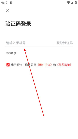 1、打開軟件進入驗證碼登錄頁面,在手機號輸入框填寫對應號碼,勾選已閱讀并同意相關協議,點擊獲取驗證碼完成登錄。