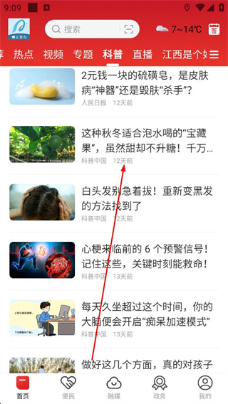 2、登錄成功后進入首頁瀏覽熱點視頻等板塊內容,選擇感興趣的資訊條目,比如秋冬適合泡水喝的果實相關內容,點擊進入詳情頁。