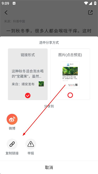 4、在分享方式界面選擇鏈接形式或圖片形式,再選定想要分享的平臺,點擊對應選項分享資訊。