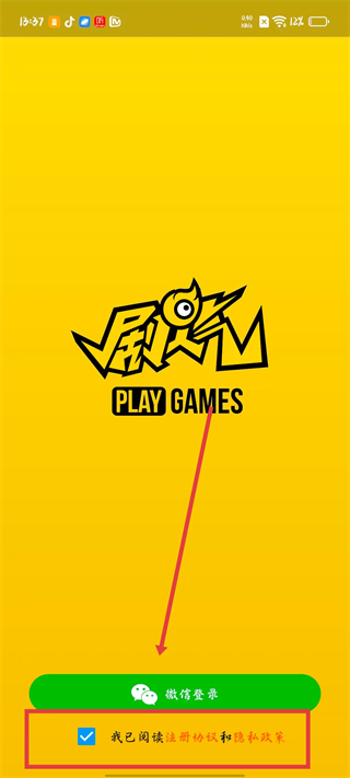 4、勾選我已閱讀注冊協議和隱私政策后,點擊微信登錄,可使用微信賬號完成登錄。