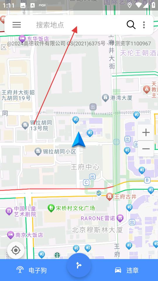 1、打開語音導航app,點擊頂部搜索地點欄,輸入美食相關關鍵詞,如美食,跳轉美食列表頁面。