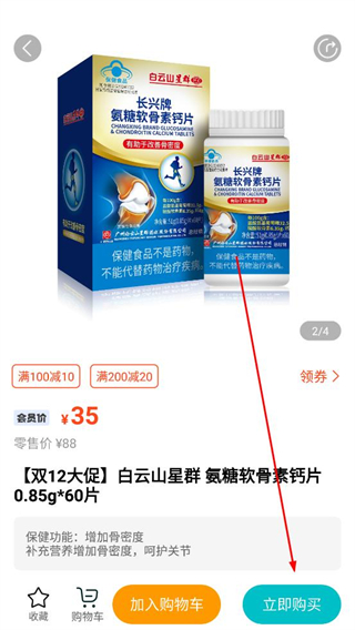 4、在商品詳情頁了解商品的功效規格等內容,直接點擊立即購買按鈕,進入下單流程完成交易。