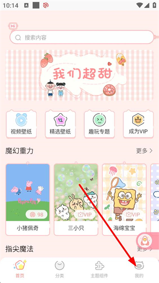 1、進入趣玩壁紙首頁,頂部設有搜索欄,下方分布著視頻壁紙精選壁紙等功能入口,還有魔幻重力分類的壁紙展示,點擊底部我的可進入對應頁面。