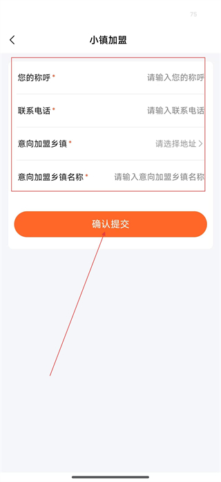 4、確認所有信息填寫完整后,點擊確認提交按鈕,完成小鎮外賣運營商的加盟申請提交。