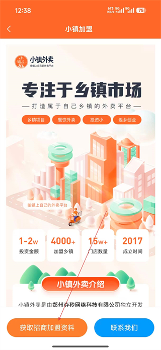 3、在小鎮加盟頁面找到加盟表單,如果想加盟就可以點擊下方的加盟獲取資料。