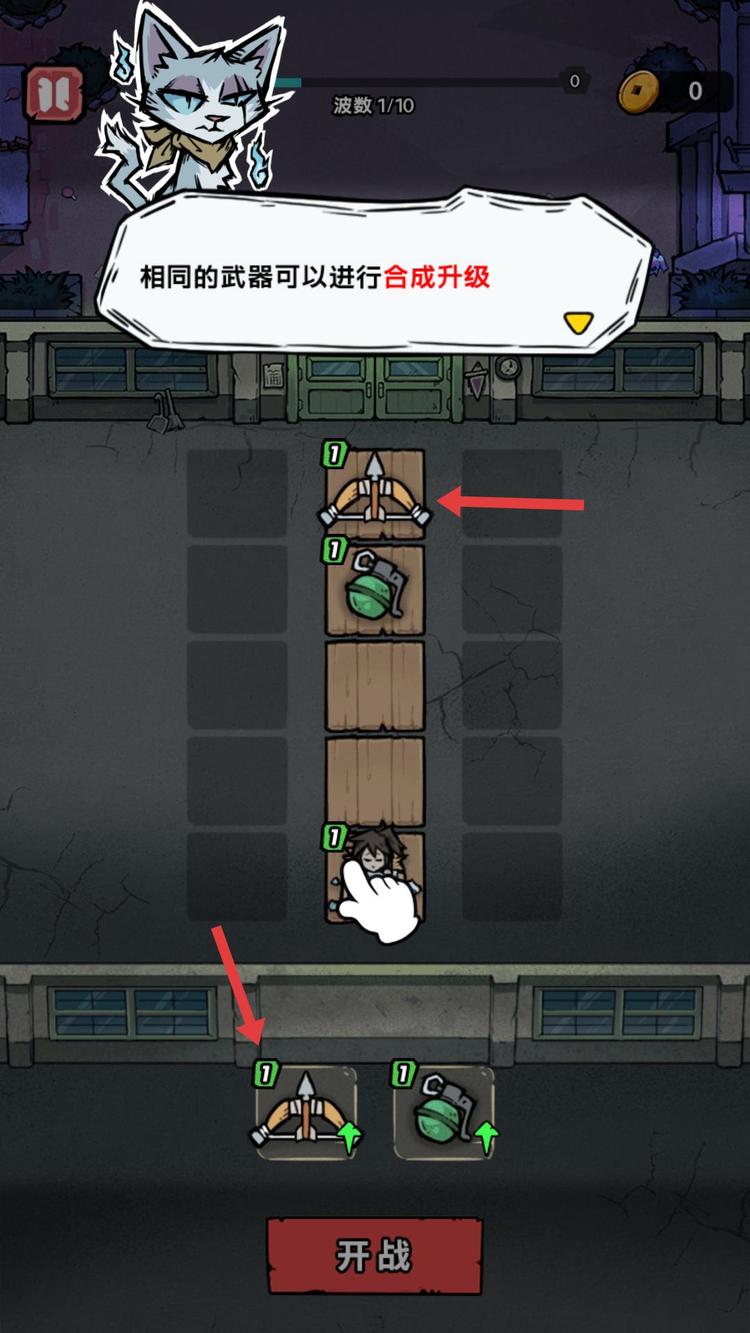 2、開始游戲后,要留意武器合成規則,相同的武器可以進行合成升級,合理合成能提升戰力,助力戰斗。