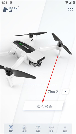 1、在首頁找到顯示Zino2的設備入口,點擊進入設備,即可開始連接對應的無人機設備,開啟無人機操控之旅。