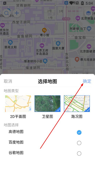 2、在選擇地圖界面選定所需的地圖類型和地圖平臺,確認選擇后點擊確定按鈕,完成地圖設置并返回位置頁面查看更新后的地圖。