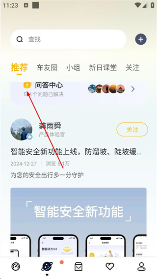 1、打使用搜索框查找內容,查看問答中心解決疑問,瀏覽智能安全新功能相關資訊,了解出行防護服務。