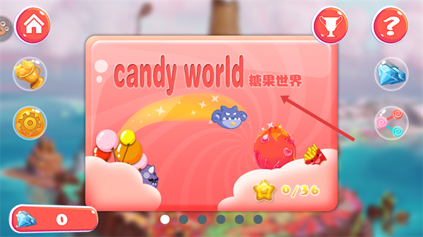 1、能看到糖果世界的界面,還有星星收集進度顯示,可由此開啟在糖果世界的冒險。