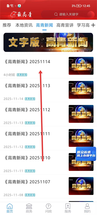 3、點擊高青新聞板塊,進入高青新聞頁面,瀏覽高青新聞,了解本地最新新聞。
