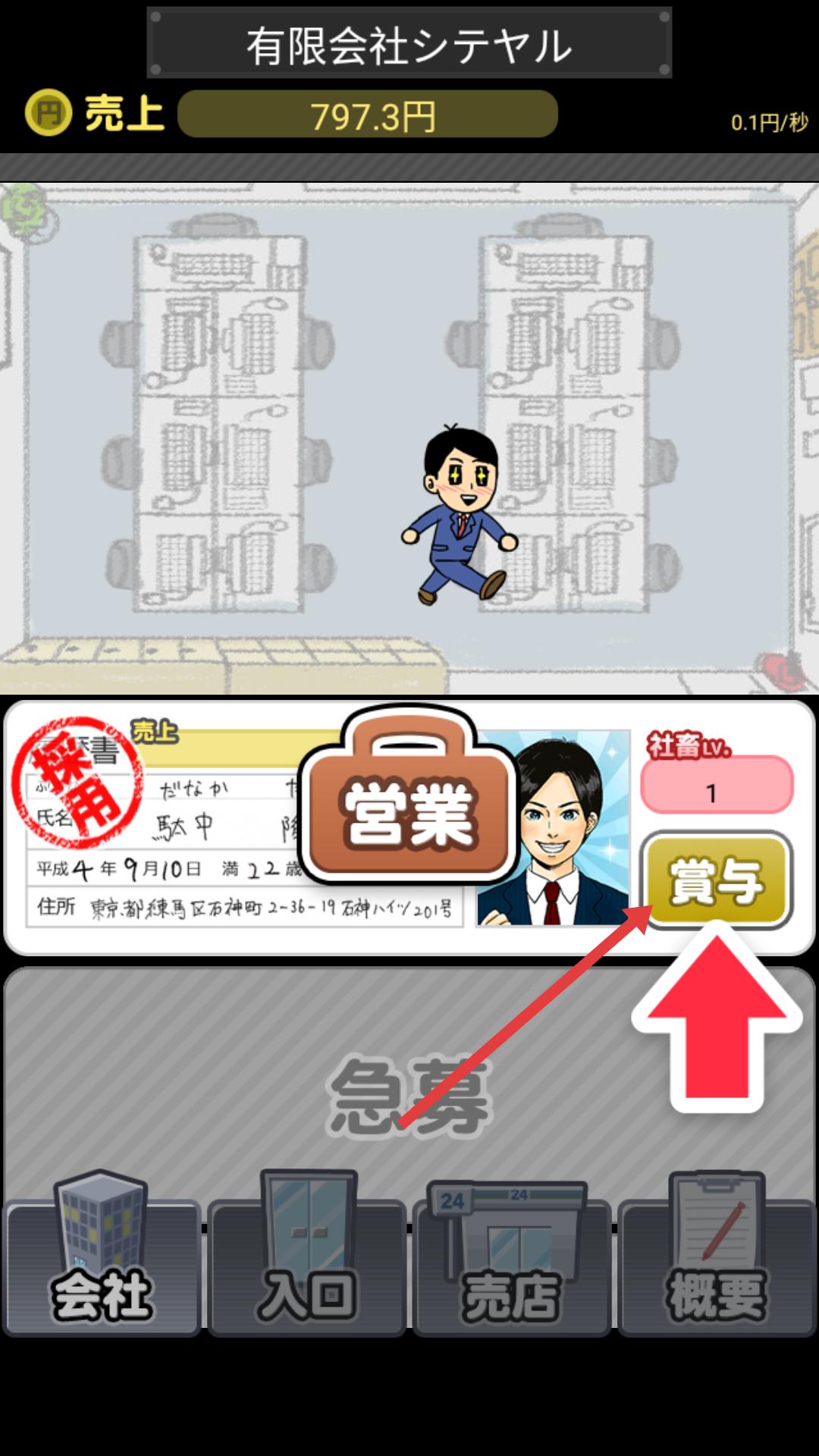1、游戲中可點擊賞與按鈕,能獲取獎勵,助力公司發展,提升業績等相關數值。