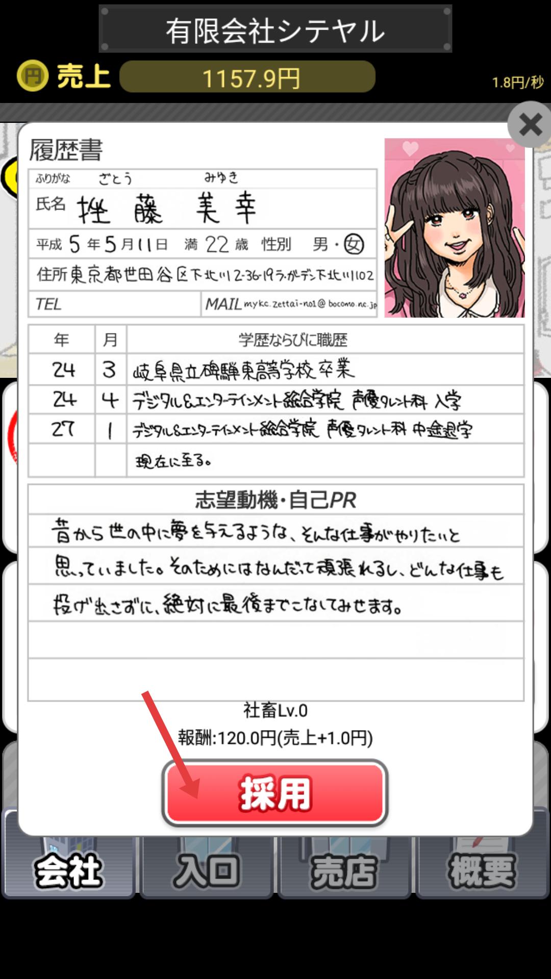 4、當出現履歷書界面時,若有采用按鈕,點擊該按鈕,可錄用對應人員,為公司增添人力,促進公司發展。