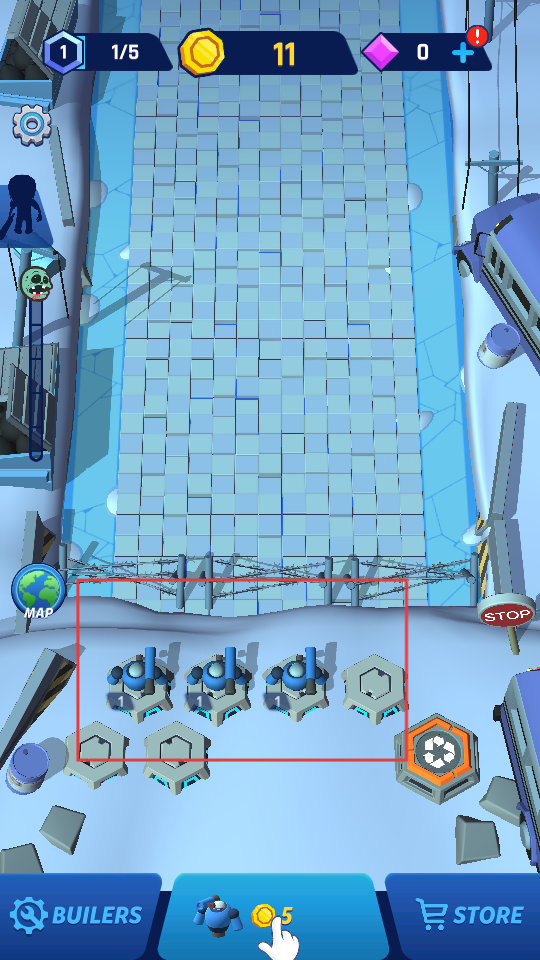 1、花費金幣,在合適位置放置基礎炮塔,通過合并相同的炮塔,能升級出更強大的炮塔,提升防御能力。