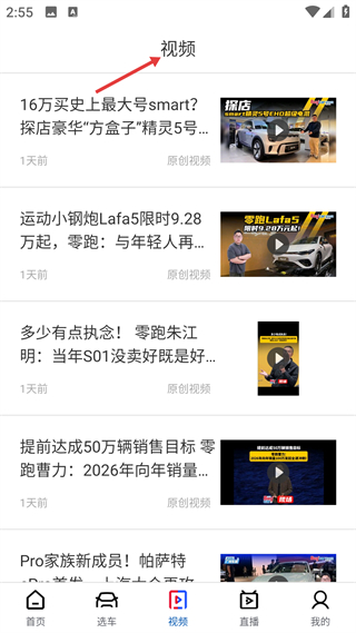 3、視頻頁,展smart精靈5號等車型原創視頻,1天前更新,以視頻呈現車型解析,適配用戶可視化資訊需求。