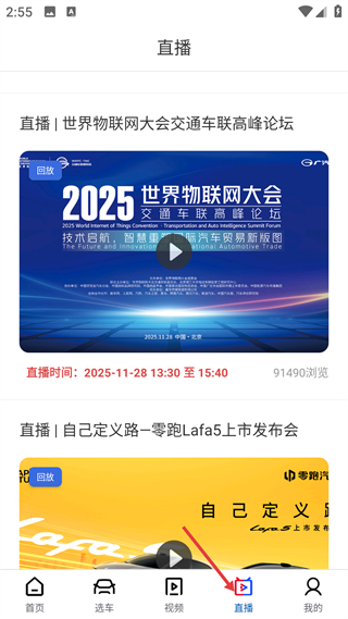 4、直播頁,提供行業論壇及新車發布會回放,覆蓋前沿場景,滿足用戶對汽車行業前沿信息的獲取需求。