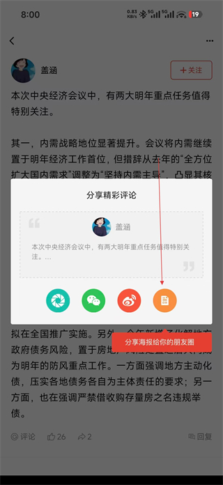 2、在資訊詳情頁查看文章內容了解會議重點任務,點擊分享按鈕,展開分享選項列表準備。