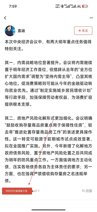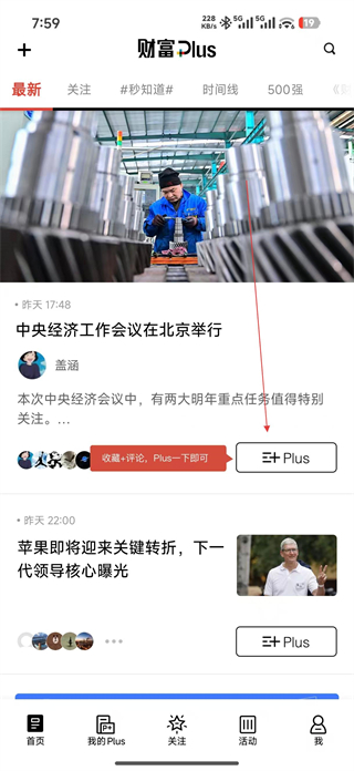1、打開財富Plus進入首頁,瀏覽最新資訊列表,選擇中央經濟工作會議相關內容,點擊進入詳情頁面。