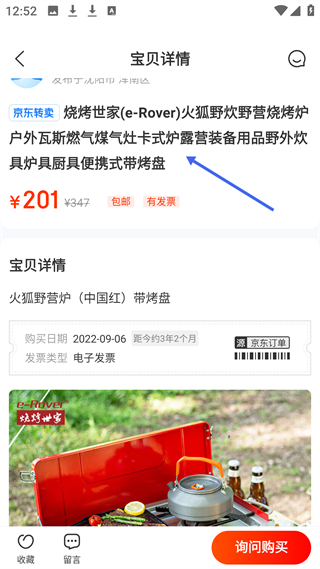 4、燒烤世家燒烤爐寶貝詳情頁,展示商品價格、購買日期等信息,提供詢問購買選項,方便了解商品詳情。