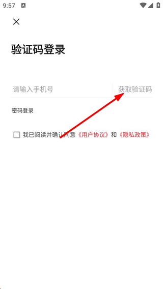 3、選擇驗證碼登錄方式,需先填寫手機號,點擊獲取驗證碼,勾選協議后輸入驗證碼,即可完成登錄操作。