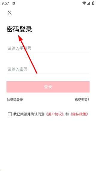 4、選擇密碼登錄方式時,需依次填寫手機號與密碼,勾選協議后點擊登錄按鈕,即可完成賬號的登錄流程。