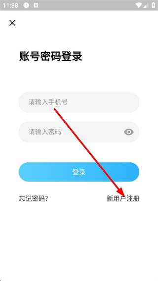 3、進入賬號密碼登錄頁面,輸入手機號和密碼即可登錄,若忘記密碼可點擊對應選項找回,新用戶可點擊注冊進入注冊流程。