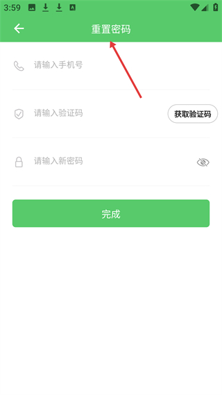 2、重置密碼頁,需輸入手機號、驗證碼和新密碼,完成后可重置密碼。