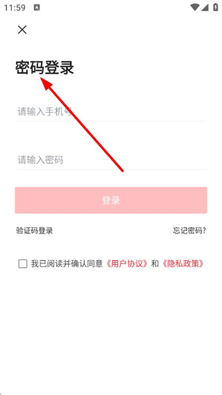 4、也可選擇密碼登錄方式,輸入手機號和對應的密碼,勾選相關協議后點擊登錄按鈕,若忘記密碼可通過對應選項找回。